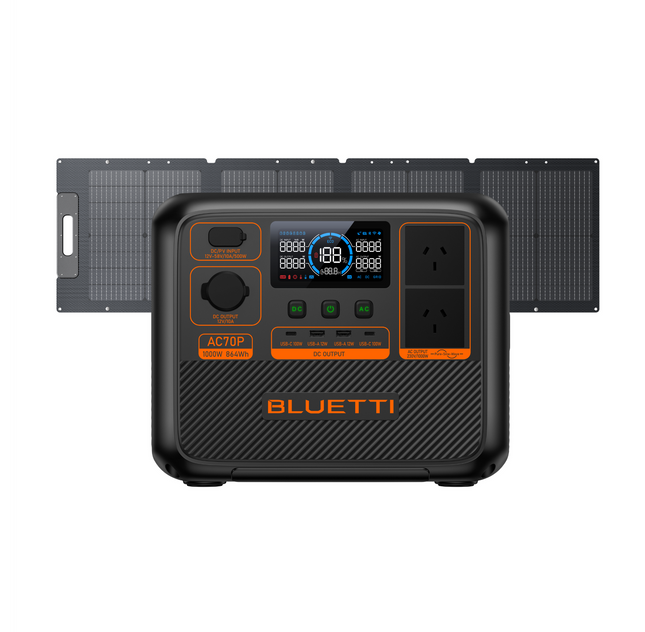 Elevate your on-the-go power solutions with the BLUETTI AC70P Power Station! Boasting a robust 864Wh capacity and a 1,000W continuous power, it effortlessly energizes your essential devices during outdoor adventures, RV escapades, or cozy moments at home. The lightweight and portable design ensures non-stop power is always at your service whenever you need.