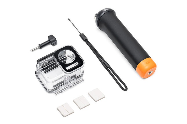 Includes the Osmo Action 60m Waterproof Case, DJI Floating Handle, Osmo Locking Screw, and Anti-Fog Inserts for underwater creation at depths of up to 60 meters,* providing a safer and more flexible underwater shooting experience.