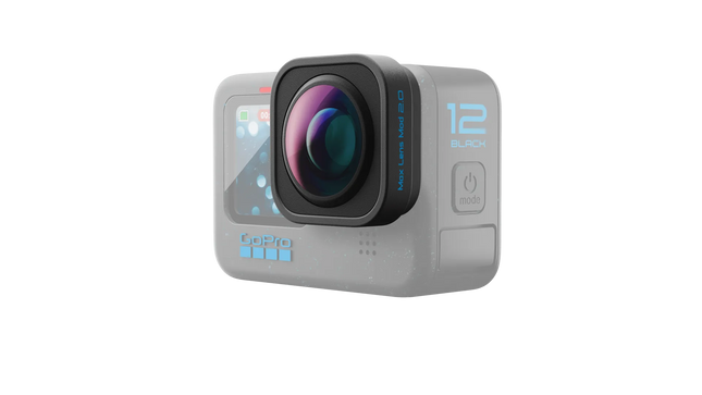 Transform HERO12 into the ultimate POV camera. The powerful duo of HERO12 Black and Max Lens Mod 2.0 offers unparalleled ultra wide-angle shots at 4K60, all while providing unbreakable stabilization for super smooth footage. Perfect for immersive POV shots of action-packed scenes and epic landscapes. Plus Horizon Lock is now available for all digital lenses, which keeps footage steady if your camera rotates a full 360° during capture. And Max TimeWarp features our smoothest TimeWarp in stunning 4K. Product Details Includes Max Lens Mod 2.0 for HERO12, protective caps and cleaning cloth Ultra wide-angle digital lens options up to a 177° field of view at stunning 4K60 for the widest shots available in a HERO camera 4K60 Vertical Capture with Max Lens Mod expands your FOV up to 48% without needing to rotate the camera or adding any additional mounts¹ Max HyperSmooth delivers unbreakable video stabilization in all video modes Smaller and lighter design than the previous Max Lens Mod, with a 2x more scratch-resistant lens Up to 4x slo-mo with jaw-dropping 1080p120 footage, catching epic details you’d never be able to see with the naked eye Easy, tool-free installation and removal Hydrophobic lens repels water, and waterproof to 16ft (5m) when installed on your GoPro³ The must-have upgradefor ultimate POV. This exclusive HERO12 Black accessory enables the widest, tallest and most thrilling POV shots possible—including an ultra wide, industry-leading 177° field of view—all in 4K60. And Max HyperSmooth provides unbreakable video stabilization in all video modes. This is the perfect upgrade for mountain biking, skiing and other action sports. Ultra Wide Angles in 4K Get an expansive field of view that’s 36% wider than HERO12 Black alone2 for amazing views of your bike or skis, and it makes the video look faster and more immersive—all in stunning 4K60. Vertical Capture for Social Media 4K60 Vertical Capture dramatically expands your field of view by up to 48%1 without additional mounts or needing to rotate the camera for immersive POV that’s ready for social media. 177° In 4K60 New to Max Lens Mod 2.0, Max HyperView delivers a 177° field of view—that’s the widest view available in a GoPro, even compared to GoPro MAX shooting in single-lens mode—in stunning 4K60. Truly Unbreakable Stabilization Experience the most powerful video stabilization available in a HERO camera with Max HyperSmooth. Available in all digital lenses, Horizon Lock keeps your footage steady even if your camera rotates 360°. Experience our smoothest TimeWarp in stunning 4K with Horizon Lock. Smaller, Lighter + Tougher Plus it has a 2x more scratch-resistant lens than the previous Max Lens Mod. It attaches simply with a twist—no tools required for installation. A hydrophobic lens repels water to help keep your shots clear in and around water. Get the epic POV shots you always wanted. 1Compared to HERO12 Black recording 16:9 aspect ratio footage with the Wide digital lens vs. HERO12 Black with Max Lens Mod 2.0 using the Max SuperView lens. 2Compared to HERO12 Black recording 9:16 aspect ratio footage with the Wide digital lens vs. HERO12 Black with Max Lens Mod 2.0 using the Max SuperView lens. 3Max Lens Mod 2.0 is waterproof, but is not recommended for underwater use due to image distortion. WARNING: This product contains Nickel, which is known to the State of California to cause cancer and birth defects or other reproductive harm. For more information, go to P65Warnings.ca.gov.