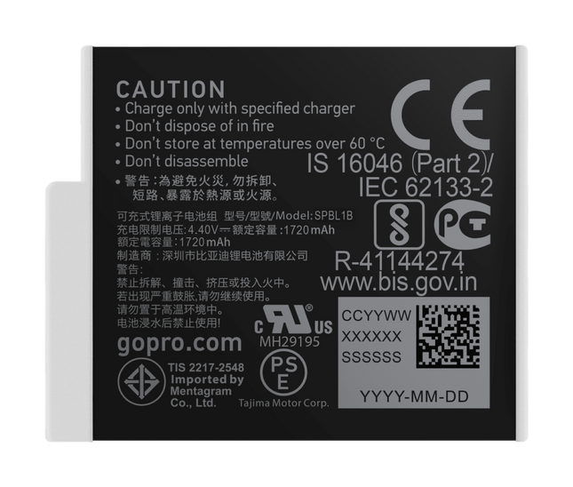 Advanced 1720mAh lithium-ion battery boosts camera performance over standard GoPro batteries across a wide temperature range. Increases recording time in both HERO10 Black + HERO9 Black with up to 40% improvement in HERO10 Black using high-performance settings.¹ Dramatically improves cold-weather performance in temperatures down to 14°F (-10°C)² Up to 13% faster charging rate than standard GoPro batteries   Boost your HERO10 or HERO9’s performance Enduro features revolutionary technology that dramatically improves your HERO10 or HERO9 Black’s performance in cold temperatures for snow sports + other winter activities while extending recording times up to 40% in moderate temperatures.¹ Highlights: Improved low-temp performance Boosts HERO10 + HERO9 performance Increased runtime for HERO10 Faster charging rates Next Level Battery Freezing temps? No problem. Longer runtimes? You bet. Enduro lasts longer + charges faster than our standard battery, so you can shoot more no matter what the elements throw at you. Improved Cold-Temp Performance Enduro powers your GoPro through the extreme cold so when the temps drop, you can now keep shooting. Here are some average stats for different shooting modes at a battery temperature of 14°F / -10°C. Note, this is the battery’s temperature—it can be even colder outside. 14°F / -10°C 5.3K60: 56 minutes 4K120: 50 minutes 4K60: 76 minutes 1080p30: 115 minutes Increased Record Times for HERO10 + HERO9 Enduro is better than our standard batteries in moderate temperatures, too. Check out these averages stats + improvements during typical outdoor activities at 77°F / 25°C. 77°F / 25°C Improvements 5.3K60 video: 60 minutes (28% improvement) 4K120 video: 51 minutes (40% improvement) 4K60 video: 71 minutes (13% improvement) 1080p30 video: 120 minutes Faster Charging Enduro gets you back out there faster, too. It reduces the time needed to get to a full charge by up to 13% over standard GoPro batteries. Warning: Don’t use the battery if it’s been damaged. Follow all warnings and instructions in the camera user manual. ¹Result based on testing with HERO10 Black recording 4K120 video at a temperature of 77°F (25°C). ²Enduro powers HyperSmooth 3.0 video stabilization in HERO9 Black down to 24.8°F (-4°C).