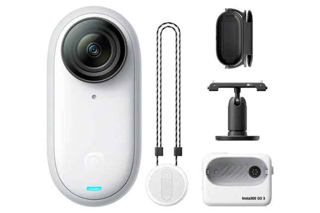 The Insta360 GO 3 Action Camera packs all the mighty action camera performance into a tiny body. Wear it to shoot first person POV videos, with multiple accessories and mounting options. The brand new Action Pod equipped with flip touch screen can remote control and charge the GO 3 camera with wireless image transmission.