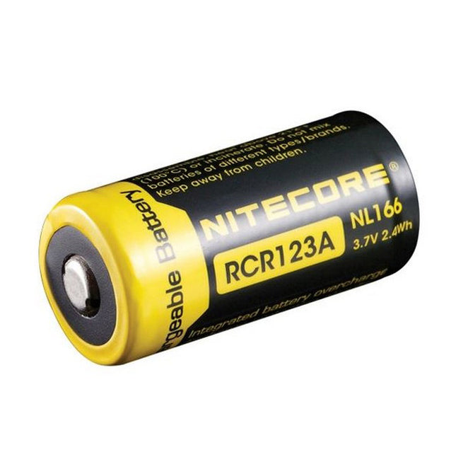 The 3.7V, 650mAh RCR123A Li-Ion Rechargeable Battery from Nitecore is designed to deliver consistent power throughout the charge-cycle for use in high-drain devices. Integrated short-circuit, over-charge, and over-discharge circuitry help maintain its performance. A built-in pressure relief valve provides further protection. The battery can take up to 500 full charging cycles, offering an economic and environmentally-friendly alternative to disposable batteries.