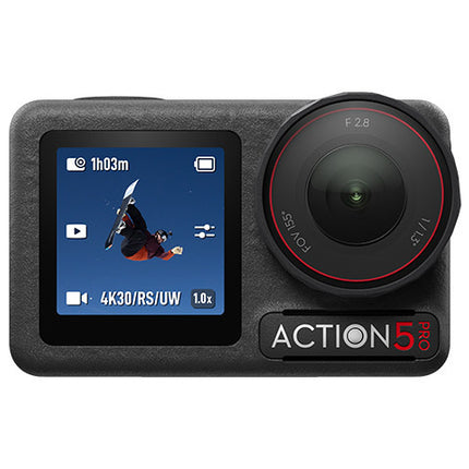 1. Measured under laboratory conditions at 25° C, while recording 1080p/24fps (16:9) video, with RockSteady on, Wi-Fi off, and screens off. Data was collected in a controlled environment and should be taken as reference only. When activating and using Osmo Action 5 Pro in the EU and the UK, actual battery life may vary due to local regulations on product operating temperatures. Refer to the actual user experience.