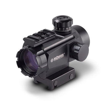 Each of the reticles can be illuminated in both, red and green. In order to accommodate all lighting conditions, you can dial up to 5 different intensities in each color.